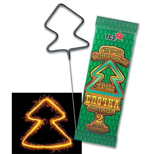 Фигурные бенгальские огни Елочка Жуковский ТР163 купить 120 руб. время работы сек. длина мм. в упаковке 2 штук ТСЗ спешите в магазин доставляет транспортная компания в Жуковском | zhukovskij.torgsalut.ru