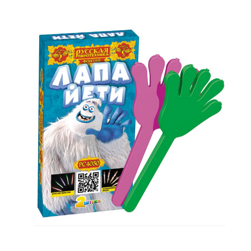 Фонтан Лапа йети Жуковский РС4030 купить 3 250 руб. высота форса 1.5 м. время работы 60 сек. Русская пиротехника известный магазин рассчитать доставку в Жуковском | zhukovskij.torgsalut.ru