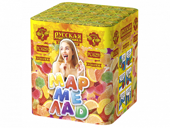 фейерверк Мармелад Жуковский РС6291 купить 1 790 руб. 14 залпов Русская пиротехника пришёл заказ магазин бесплатная доставка в Жуковском | zhukovskij.torgsalut.ru