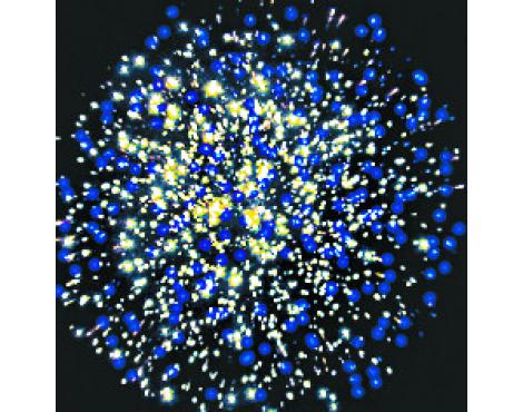 4. Зелено-фиолетовая сфера (пион) и облако треска (трещащая хризантема).