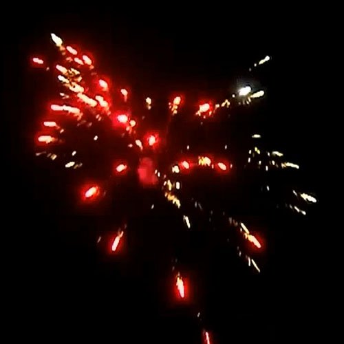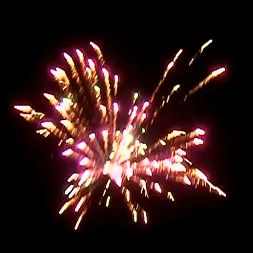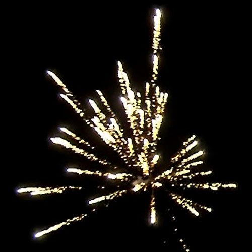 4. Множество серебряных ниспадающих нитей (парча), зеленая сфера (пион) и облако треска (трещащий дождь).