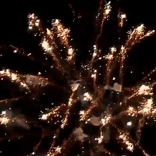 Разноцветные кометы, серебряные, трещащие искристые трассы разрываются сферами из: 1. золотых форсов с золотыми искрами и синих огней; 2. зелёных пульсирующих и фиолетовых огней; 3. трещащих искристых форсов; 4. синих и золотых мерцающих огней.