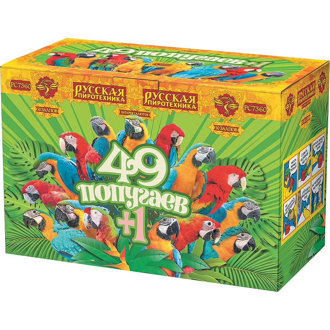 Фейерверк 49 попугаев+1 Жуковский РС7360 купить 10 760 руб. 50 залпов Русская пиротехника магазин контакты организуем доставку в Жуковском | zhukovskij.torgsalut.ru